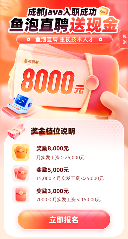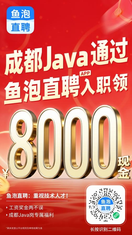鱼泡直聘发起“成都Java入职送现金”活动,最高可领8000元现金红包!