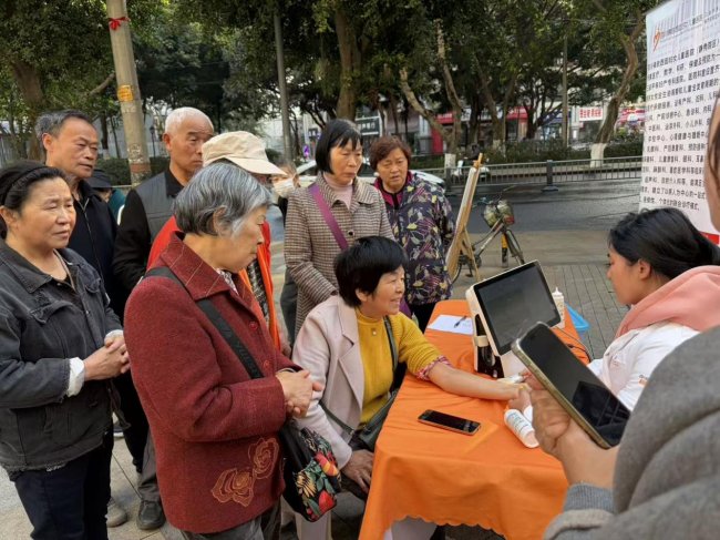在健康服务区,四川锦欣西囡妇女儿童医院的医护人员为居民提供了多项专业检测与咨询服务。骨密度检测帮助老年人了解自身骨骼健康状况,预防骨质疏松;疼痛睡眠科咨询吸引了不少受疼痛和睡眠问题困扰的居民,医生耐心解答疑问,提供专业建议;血压测量服务则让居民随时掌握自身健康状况,增强健康管理意识。